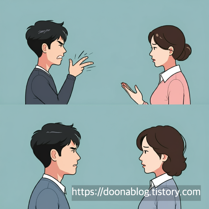 - 외면하기: 상대방의 말을 무시하거나 대화를 회피하는 행동