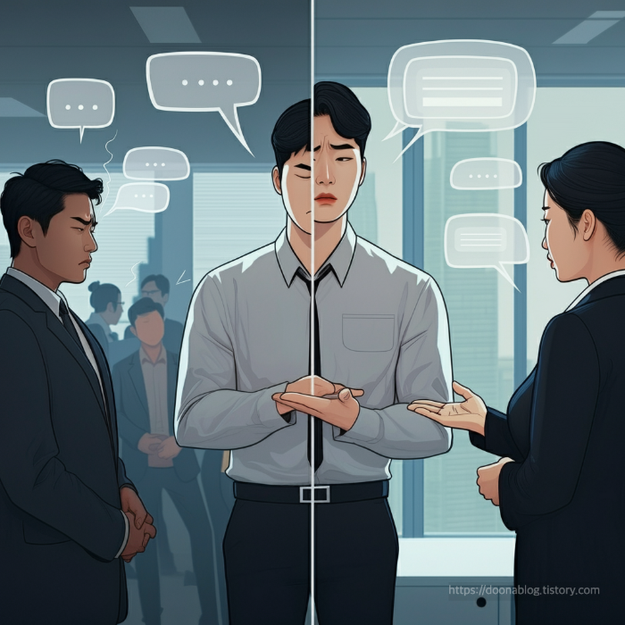 - '나' 메시지 사용하기: "당신은 항상 늦어"라고 비난하는 대신 "나는 약속 시간을 지키는 것이 중요하다고 생각해"라고 자신의 감정과 가치를 표현합니다.