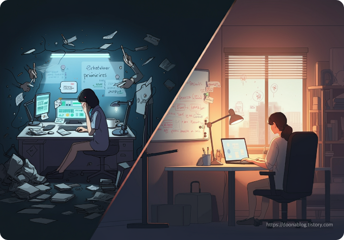 - 중요한 일부터 처리하기: 하루 중 가장 생산적인 시간대에 핵심 업무를 먼저 처리합니다.