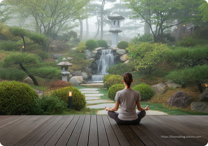 (4초간 코로 숨을 들이마시고, 7초간 숨을 참은 후, 8초간 입으로 천천히 내쉬는 호흡법으로 스트레스와 불안감을 완화하고 부교감신경을 활성화하여 뇌의 안정을 돕습니다.) - 복식호흡