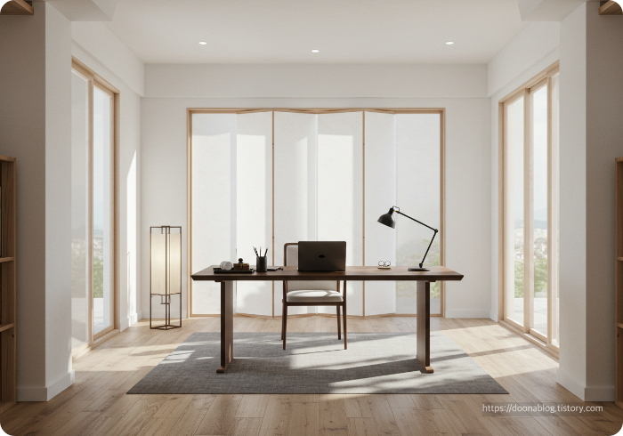 마치 전통 한옥의 툇마루처럼, 내부와 외부 사이의 적절한 거리를 만들어주는 공간이죠.