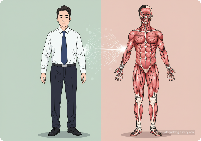 정신력은 단순히 생각만으로 발휘되는 것이 아닙니다. 신경망, 내분비계, 근육 시스템, 혈액순환, 호흡 등 몸의 여러 시스템이 함께 작용해야 발휘되는 것이죠. 실제로 감정은 생각이 아닌 신체 감각에서 시작됩니다. 우리가 두려움을 느낄 때는 심장이 빨리 뛰고, 손에 땀이 나며, 호흡이 가빠지는 등의 신체적 변화가 먼저 일어납니다. 그 다음에 '아, 내가 두려움을 느끼고 있구나'라고 인식하게 되는 거죠.
