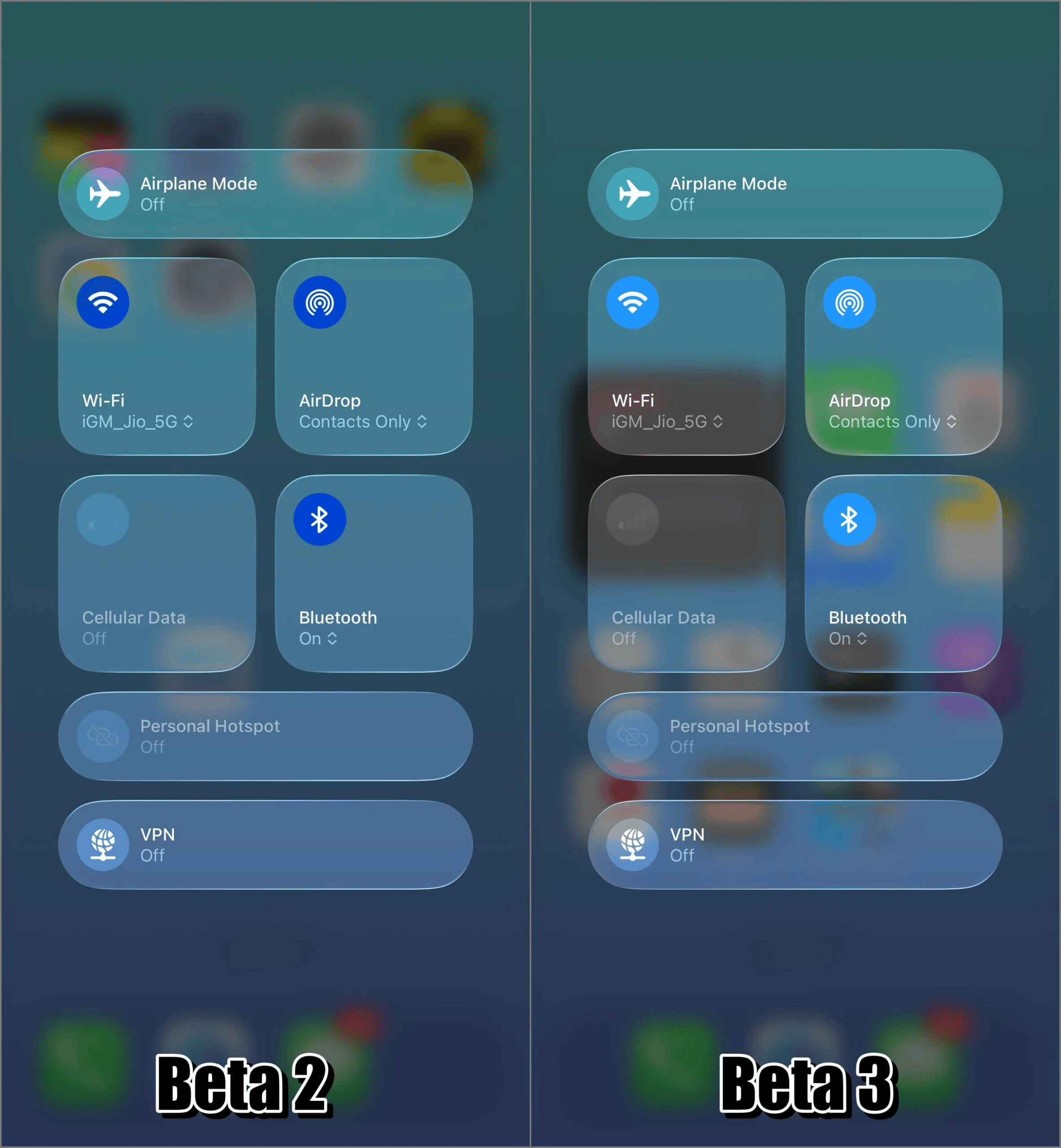 컨트롤 센터 색감 개선: Wi-Fi, Bluetooth 토글 색상 통일